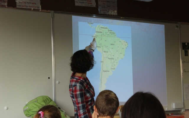 Je sens leurs regards pétillants braqués sur moi. Curieux, ils sont impatients d’en savoir plus. Alors je leur explique tout : les 18 heures d’avion pour traverser l’Atlantique, les pays que je vais visiter, les projets que je vais découvrir, les paysages, les animaux, la nourriture…. Les enfants sont étonnés, parfois dégoutés (lorsqu’ils ont deviné qu’on mangeait du cochon d’Inde au Pérou) mais souvent très perspicaces. Ils m’épatent !