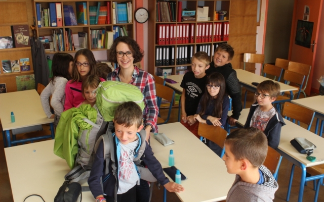 “- Des vêtements !” “- Une couverture !” “- Un passeport !” “Une lampe! …” Les doigts se lèvent les uns après les autres. Les élèves devinent le contenu de mon sac à dos et ils voient juste ! Des médicaments, aux billets d’avion, ils me suggèrent même de ne pas oublier ma carte vitale.